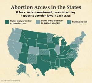 - Now, each state will be able to make their own laws relating to abortion access, and there is no longer a federal law in place related to abortion. In some states, it will remain legal, but in many it will be illegal very soon, perhaps in the next few days. The map below shows what is likely to happen state by state. Photo credit: https://www.everydayhealth.com/public-health/roe-v-wade-supreme-court-ruling/